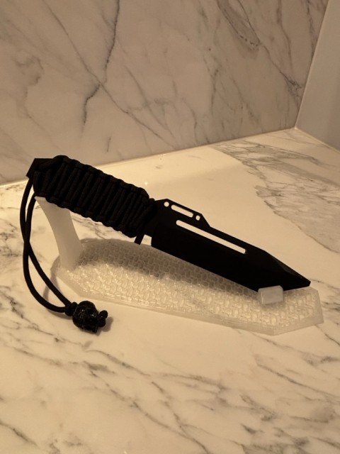 En tøff treningskniv du kan trene med, bundet med paracord. Den er printet i 3D i sort PLA plast